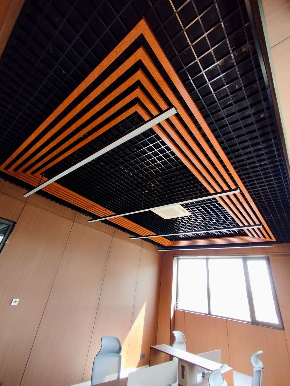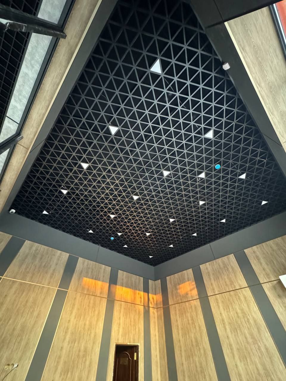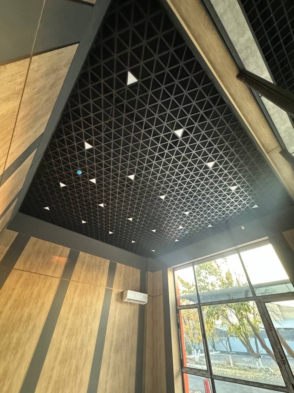 Пирамидальные грильято потолки — это разновидность решётчатых подвесных потолков, где ячейки имеют объёмную форму с эффектом «пирамиды». За счёт особого профиля создаётся визуальная глубина и более выразительный дизайн по сравнению с классическим грильято.